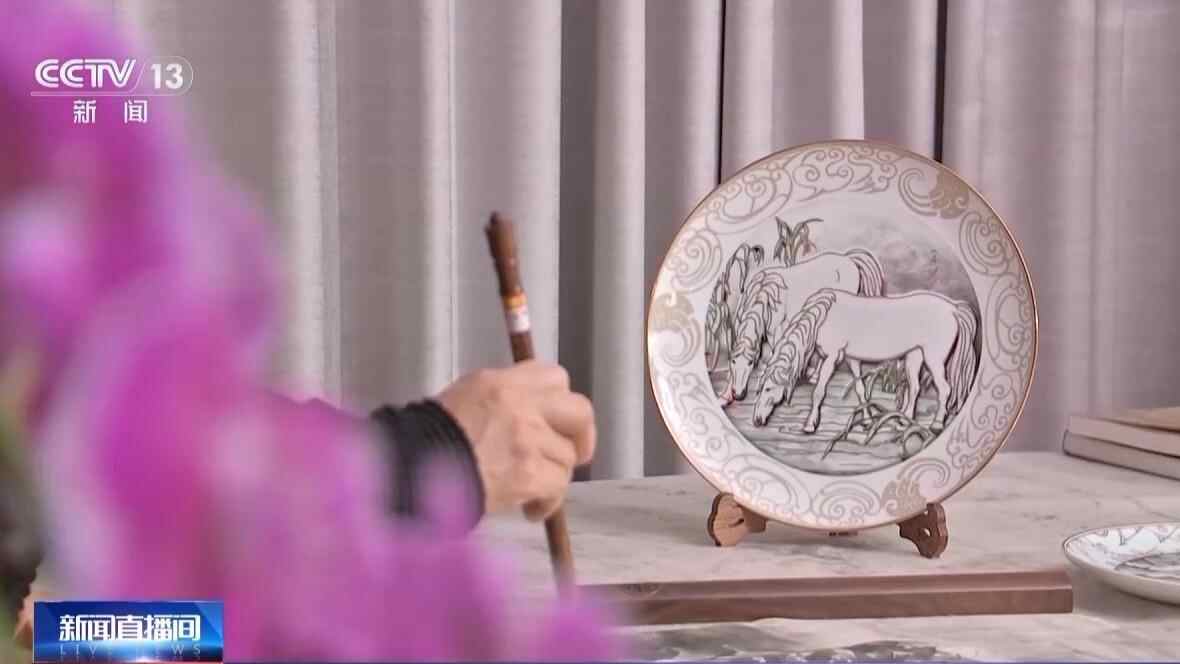 春盘、春碗作为春节团圆餐桌的经典器物,承载着国人对新年的美好期许,这也是王小燕的核心创作切入点。为了精准把握马年生肖文化内核,创作团队前期查阅古籍文献与文物资料,从汉代铜奔马雄姿中汲取灵感,最终锁定“灵动矫健、祥和喜庆”的马形象为核心设计元素。