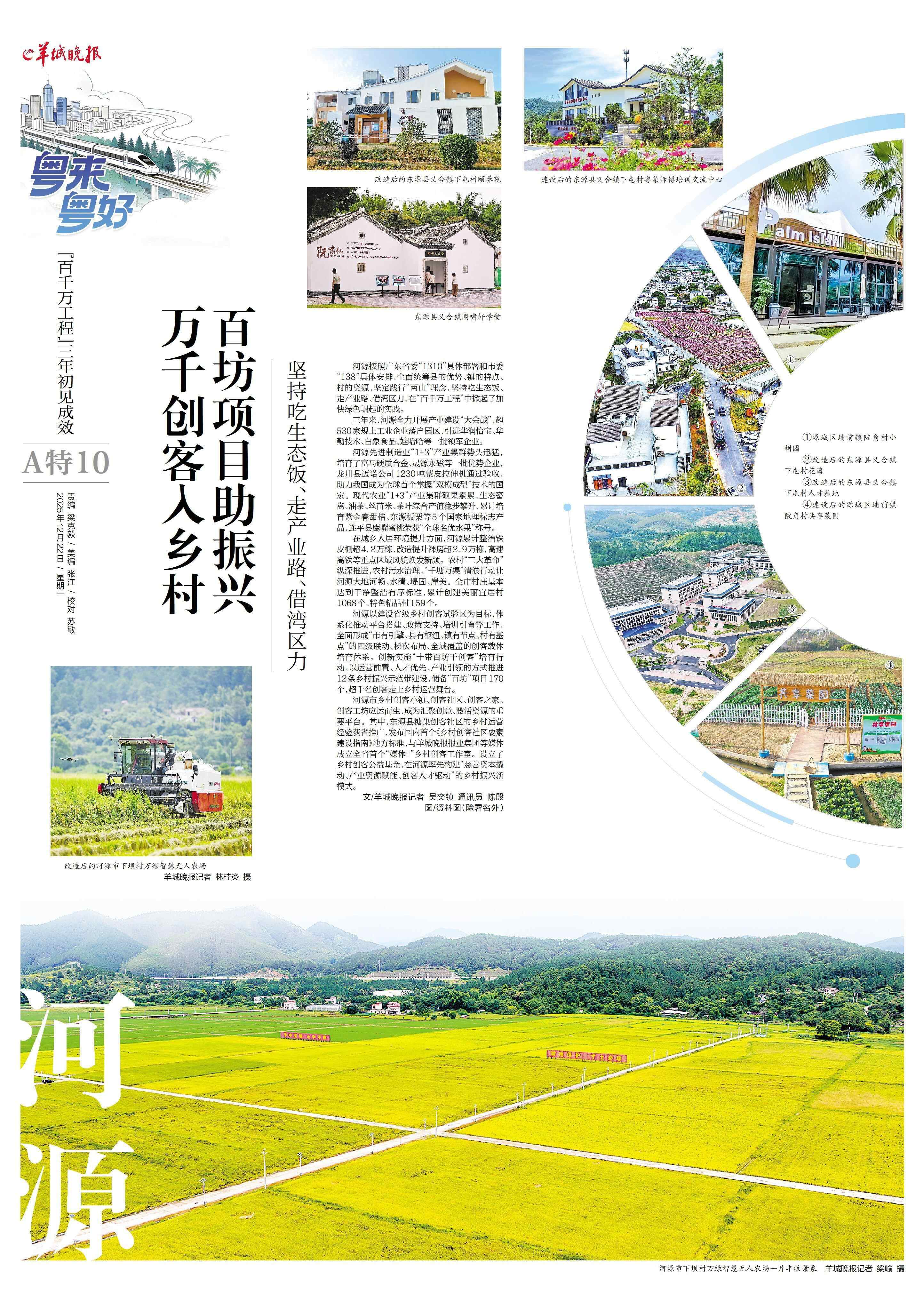 在城乡人居环境提升方面,河源累计整治铁皮棚超4.2万栋,改造提升裸房超2.9万栋,高速高铁等重点区域风貌焕发新颜。农村“三大革命”纵深推进,农村污水治理、“千塘万渠”清淤行动让河源大地河畅、水清、堤固、岸美。全市村庄基本达到干净整洁有序标准,累计创建美丽宜居村1068个、特色精品村159个。