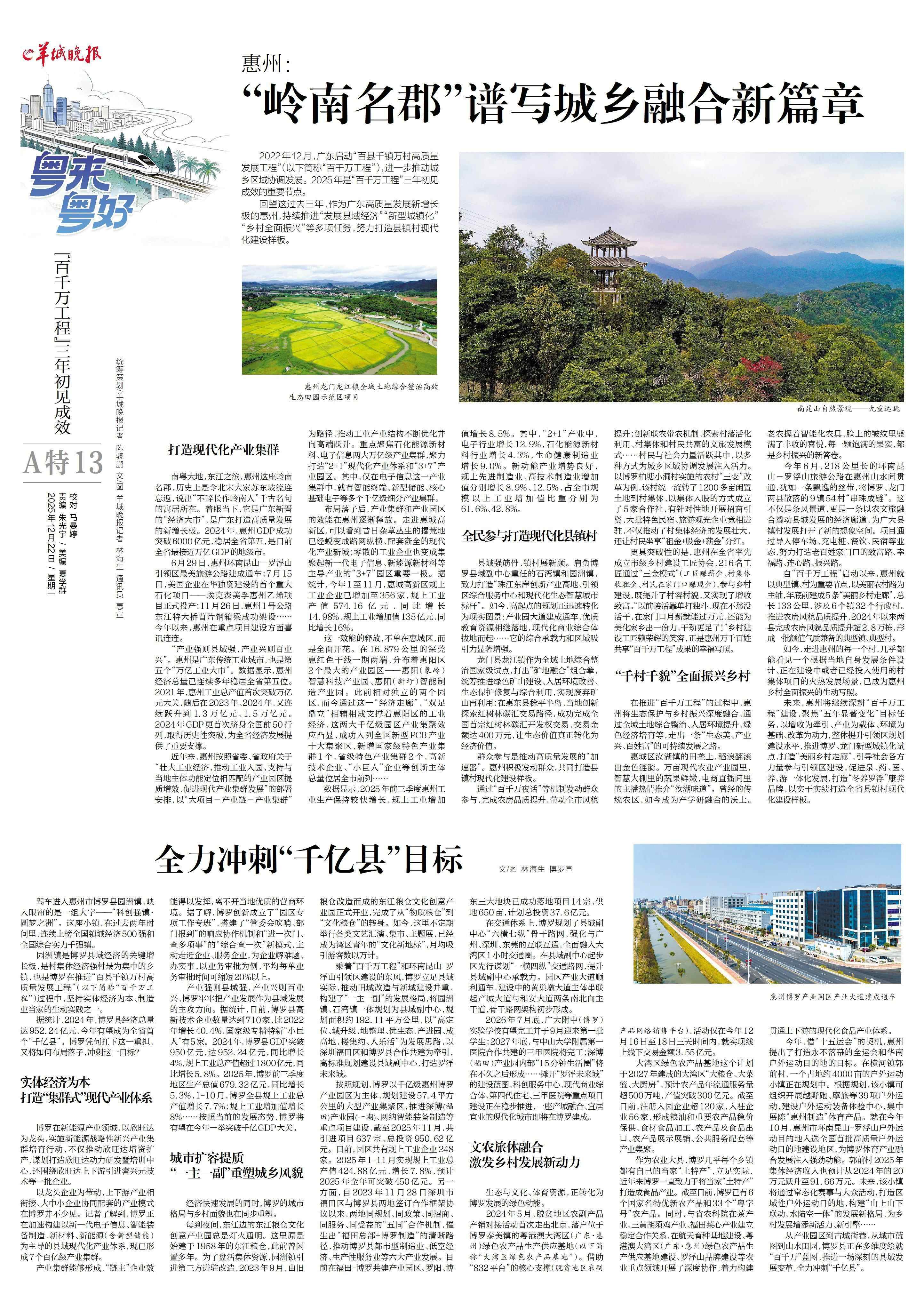 从产业园区到古城街巷,从城市蓝图到山水田园,博罗县正在多维度绘就“百千万”蓝图,推进一场深刻的县域发展变革,全力冲刺“千亿县”。