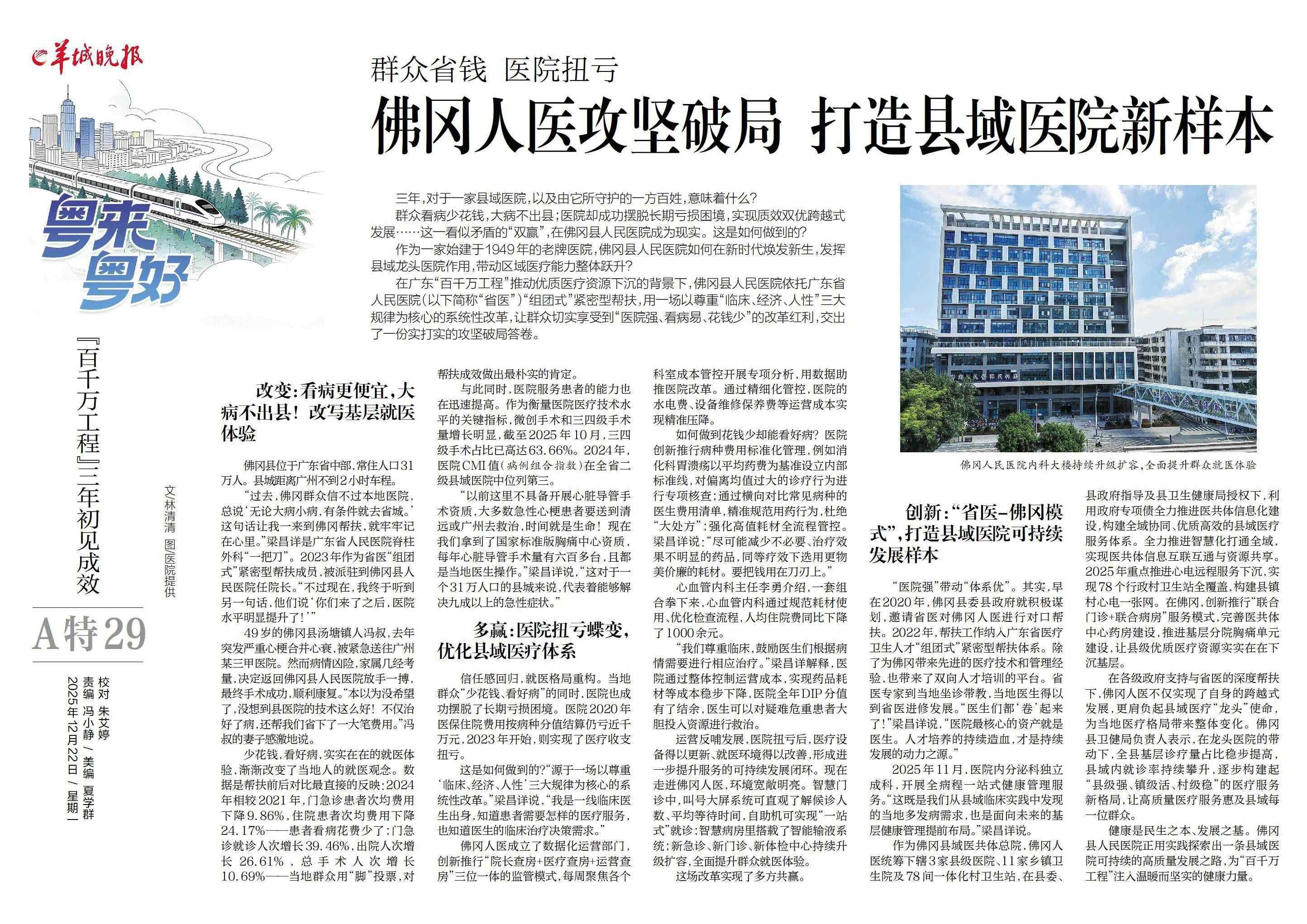 群众看病少花钱,大病不出县;医院却成功摆脱长期亏损困境,实现质效双优跨越式发展……这一看似矛盾的“双赢”,在佛冈县人民医院成为现实。这是如何做到的?