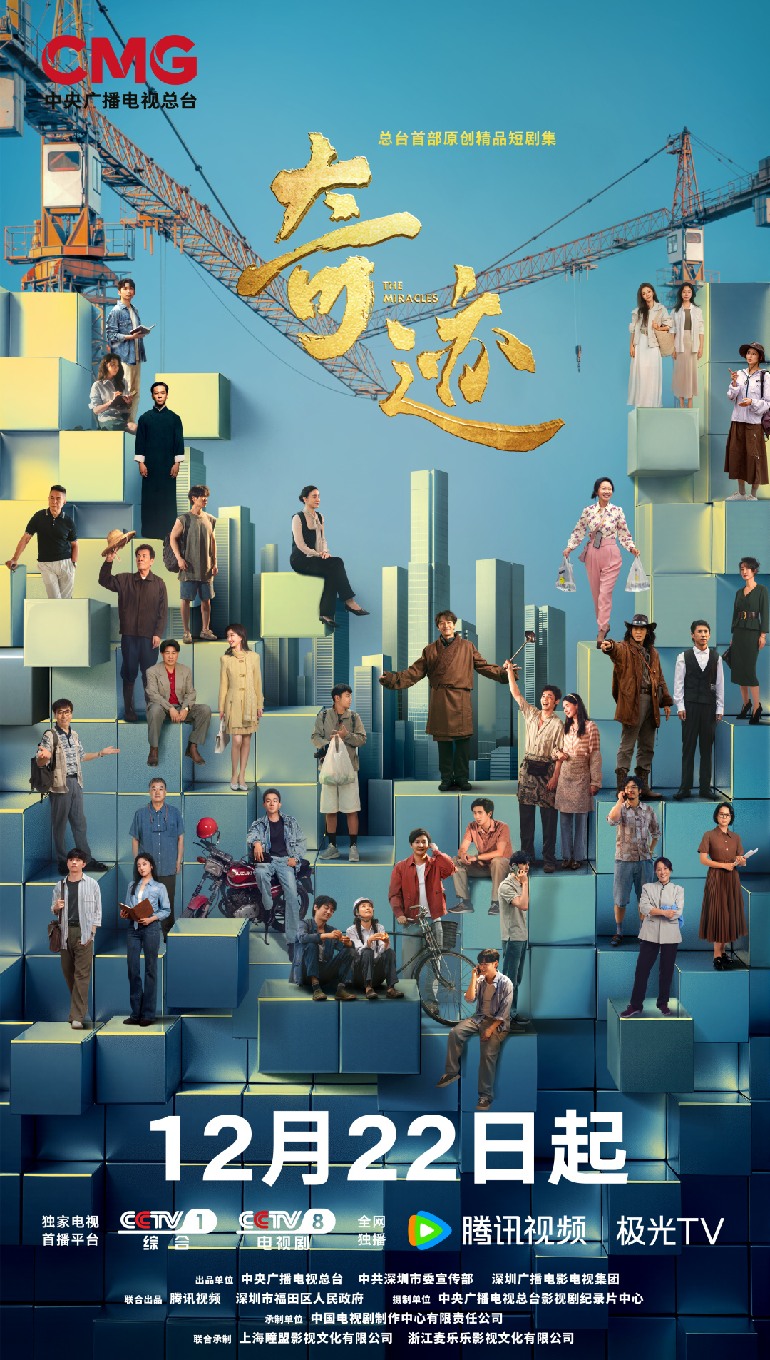 12月22日,中央广播电视总台首部原创精品短剧集《奇迹》将在CCTV-1黄金档首播,2026年1月登陆CCTV-8黄金强档播出,腾讯视频全网独播,并跨年播出至2026年1月。该剧由中央广播电视总台、中共深圳市委宣传部、深圳广播电影电视集团出品。这部以深圳经济特区发展历程中的人与事为原型和素材、讲述中国式现代化奇迹和中国人民追求美好生活故事的精品短剧集,将开启2026年APEC“中国年”深圳之约的文艺序幕。