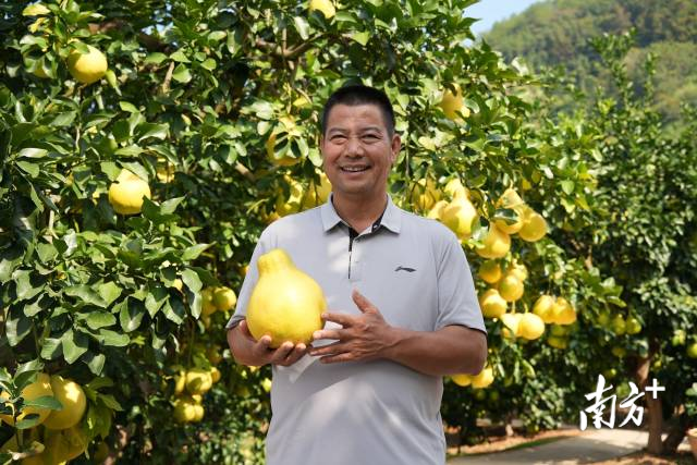 梅州市梅县区雁洋镇南福村,今年金柚丰收。南方+记者 杨斐君 摄