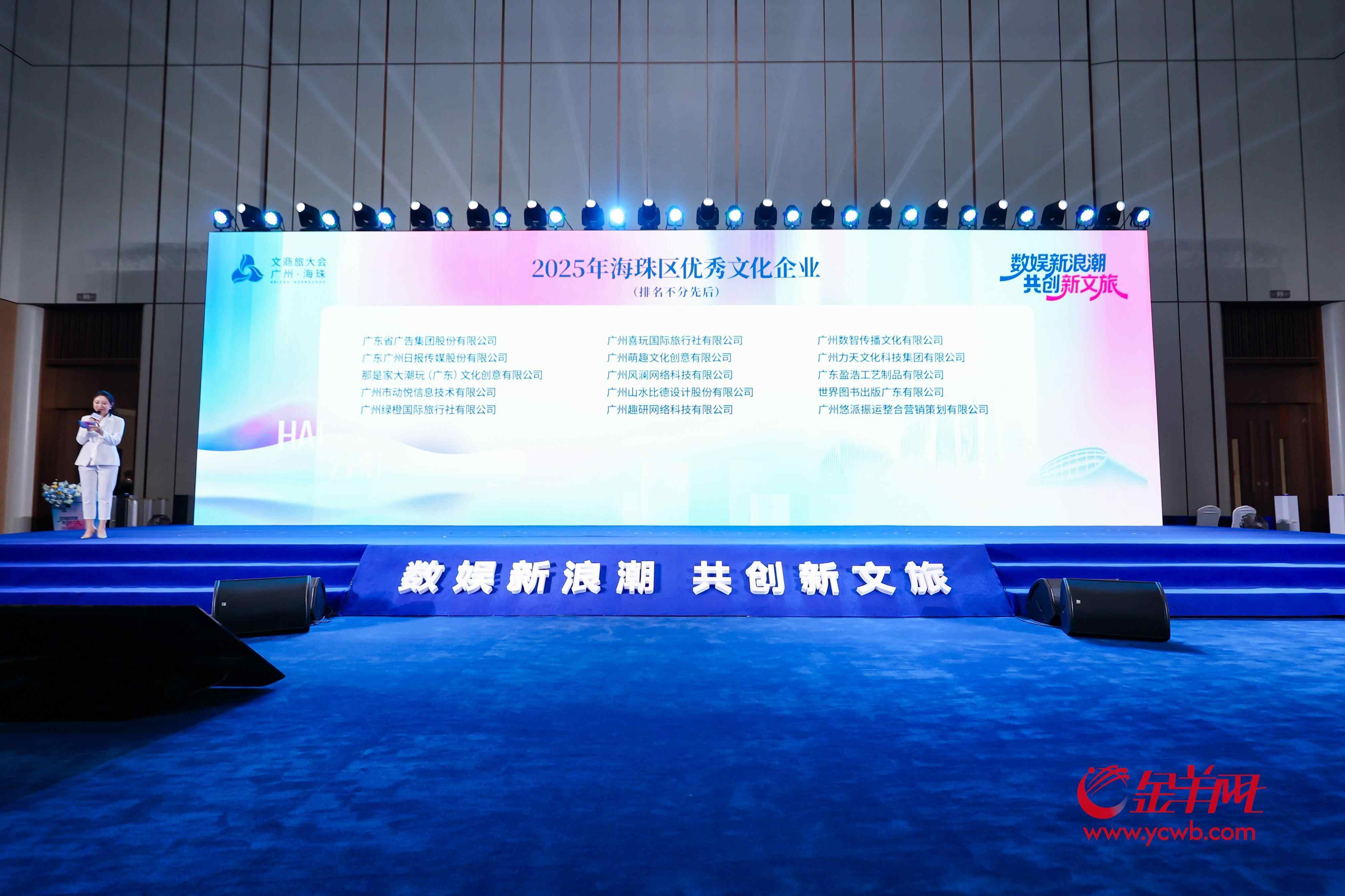 大会现场公布了2025年海珠区优秀文化企业及数字文娱产业“领跑者”名单,共30家企业获评,涵盖影视微短剧、动漫游戏、直播社交、数字展陈等领域。这些企业体现了海珠区文化产业的发展活力与多元生态。