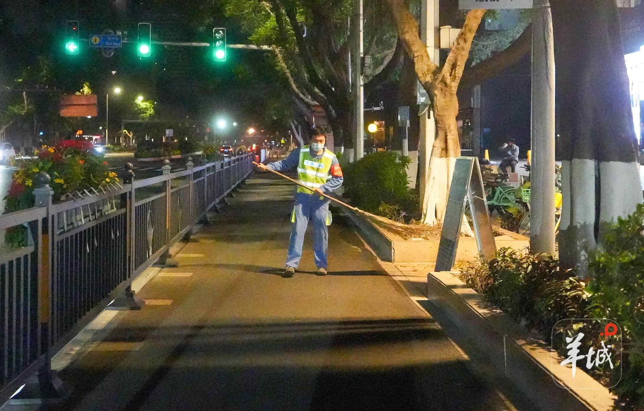 同样在夜色中开始工作的,还有负责赛道及周边环境的环卫人员。据天河体育中心所属天环二所介绍,部分环卫工人凌晨三点已到位,开始清理街道,为赛事做准备。