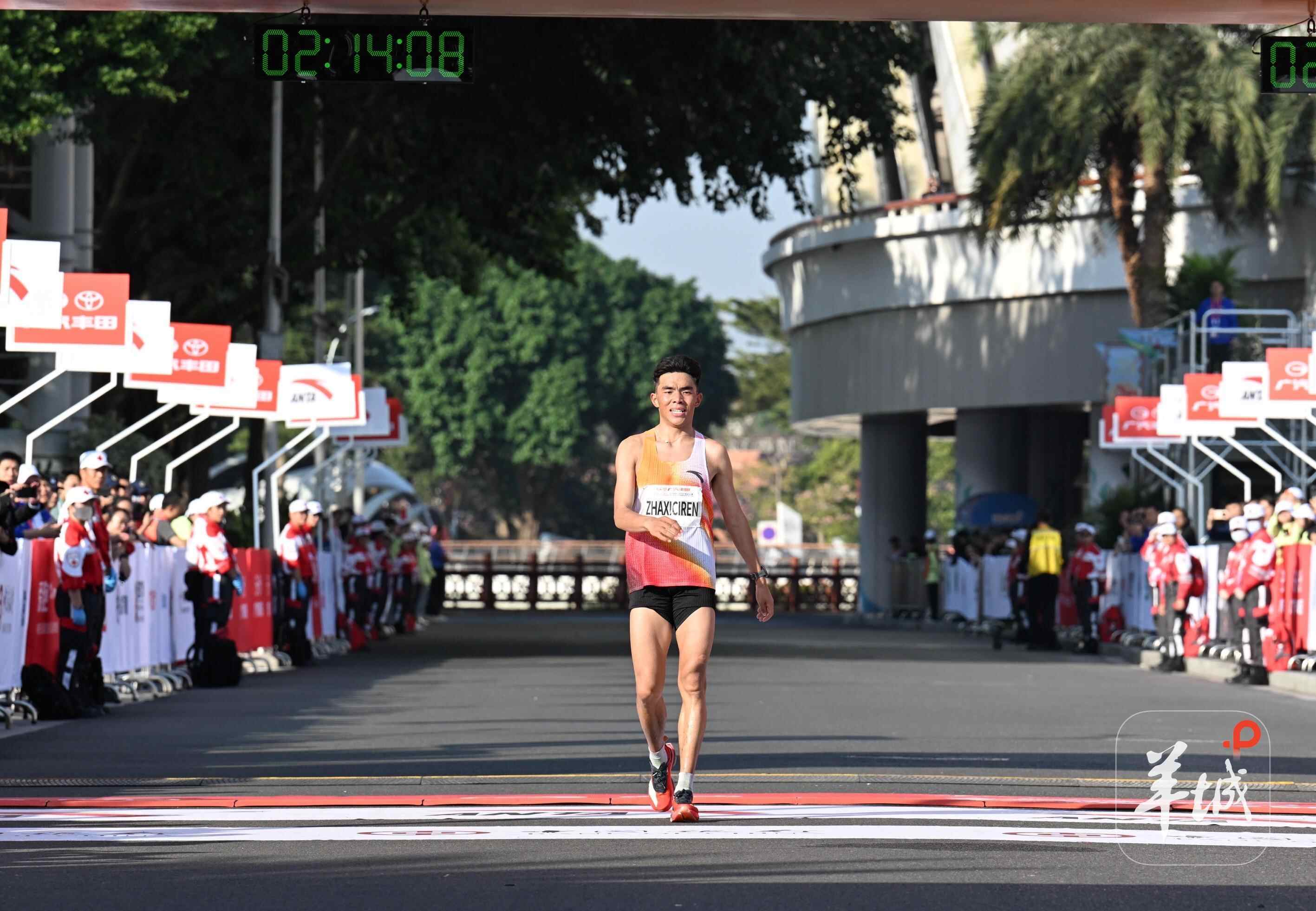 来自西藏的选手扎西次仁以2小时14分06秒的成绩排名第三,夺得国内男子组冠军。