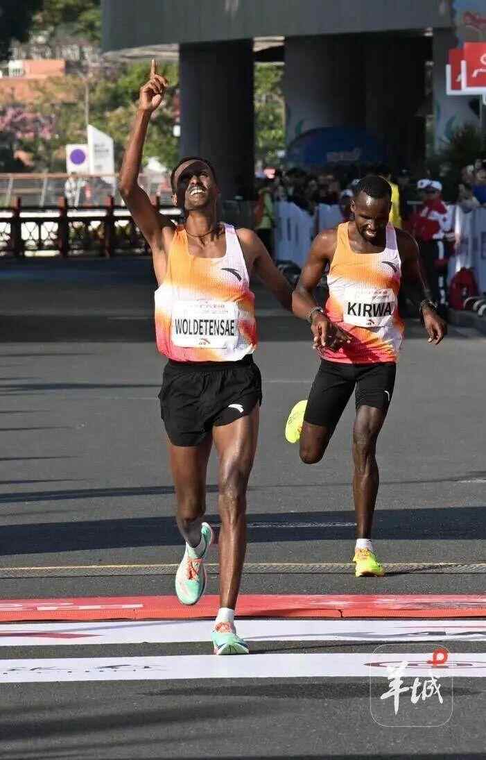经过激烈的争夺,来自埃塞俄比亚的选手阿费沃克·梅斯芬·沃尔德腾萨耶以2小时12分23秒的成绩夺得男子组冠军。