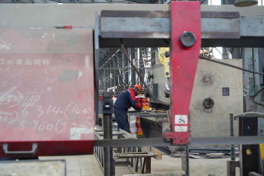 12月8日,在俄罗斯犹太自治州首府比罗比詹市,一家从事钢结构材料生产的中资企业的员工正在工作。新华社记者 刘恺 摄