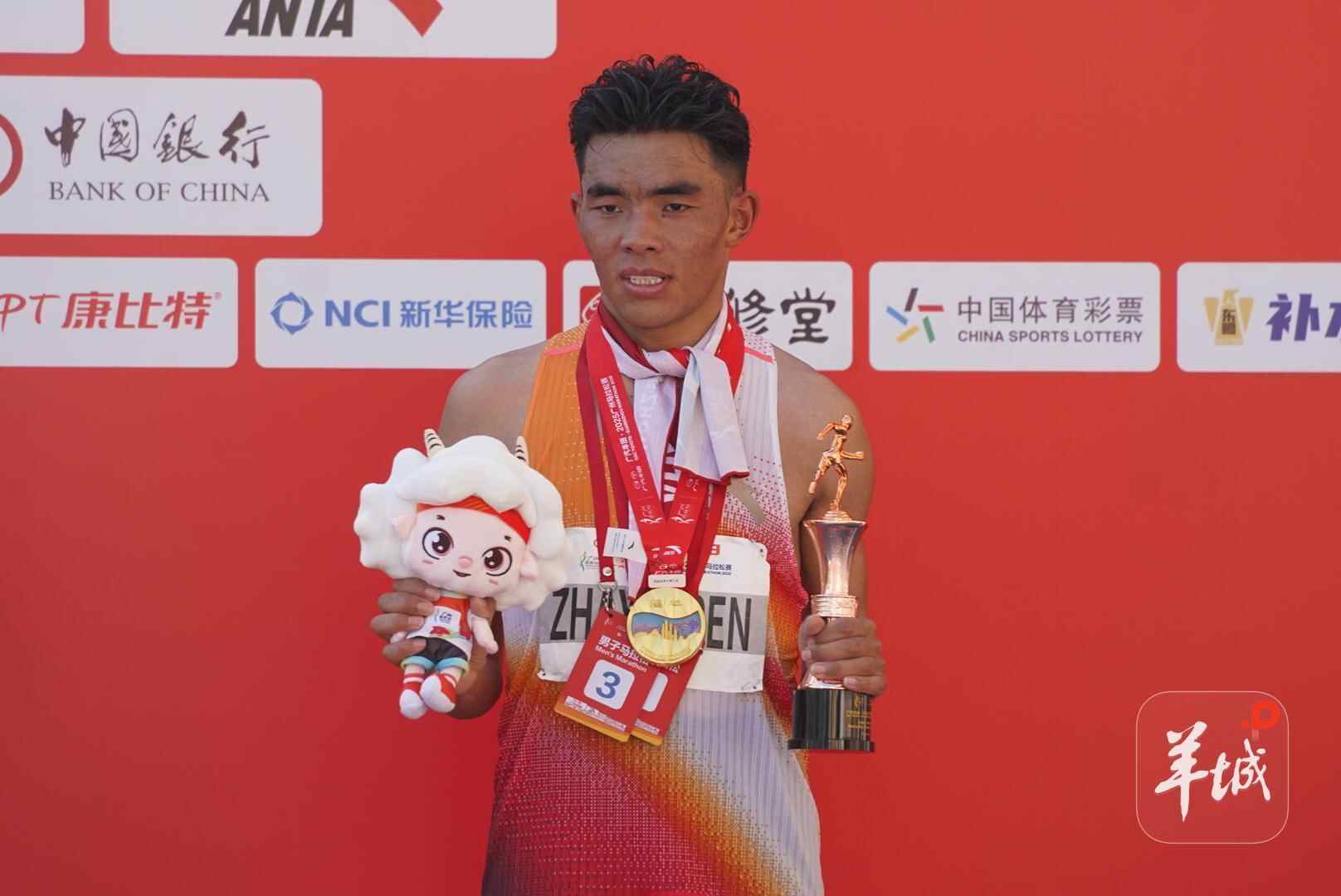 12月21日,西藏选手扎西次仁以2小时14分06秒的成绩夺得2025广州马拉松赛季军,收获国内男子组冠军。