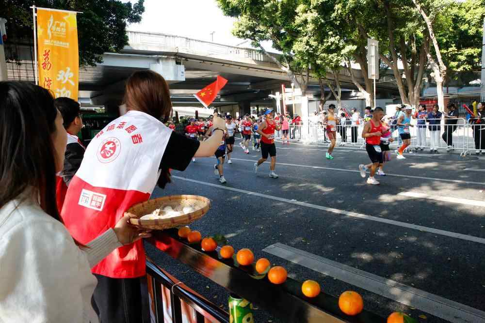 赛道两旁,身披统一标识的志愿者以灿烂的笑容和响亮助威声为跑者提供暖心鼓励;可爱的少儿粤剧表演者挥动水袖,以精彩表演致敬跑者;激昂的锣鼓催动醒狮矫健腾跃,为赛道注入磅礴动力;朝气蓬勃的少儿篮球表演,跃动着青春的活力……