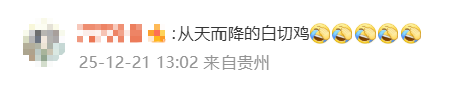 对此,网友调侃这是从天而降的白切鸡,也有网友调侃说用葱姜料酒给鸡泡个澡。
