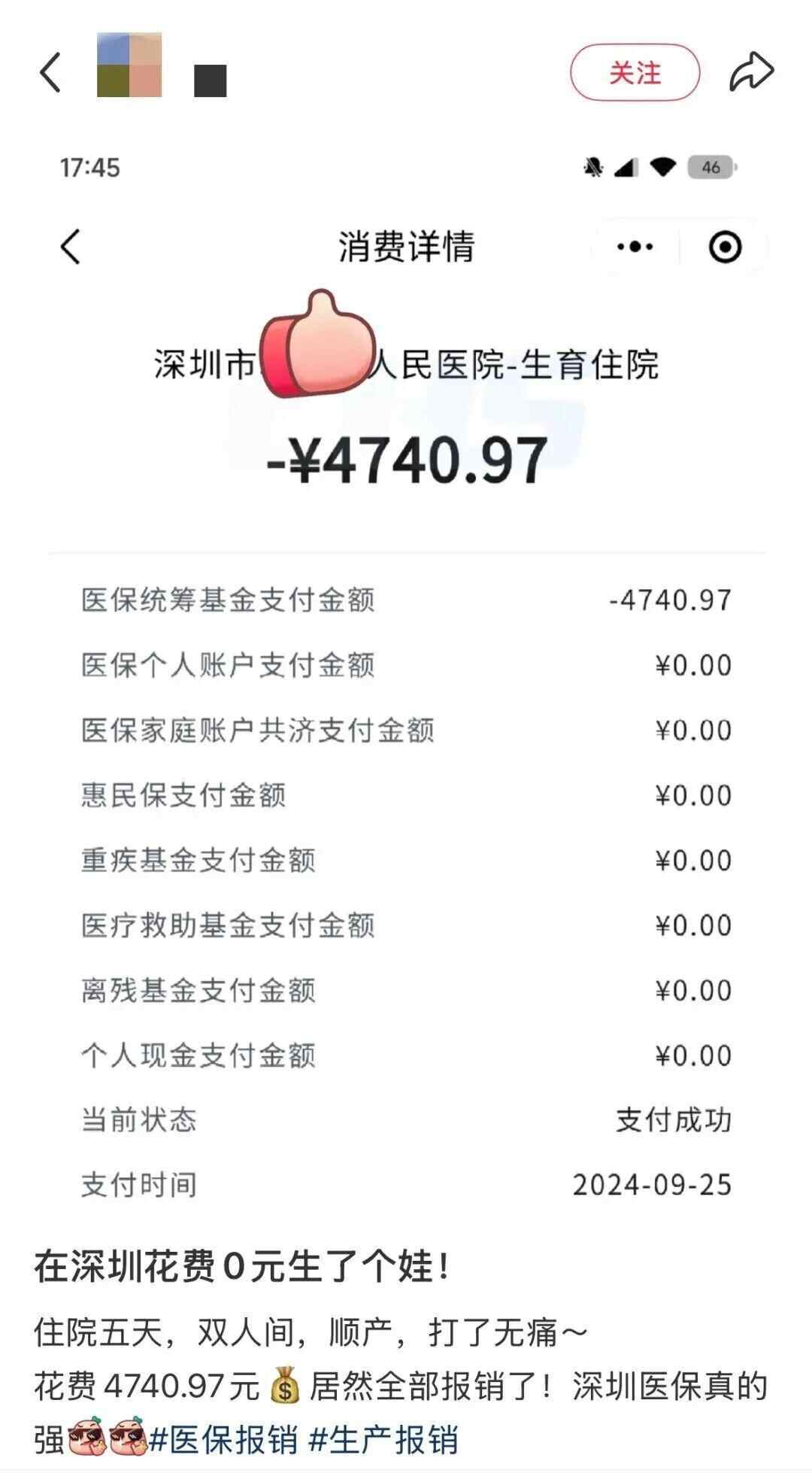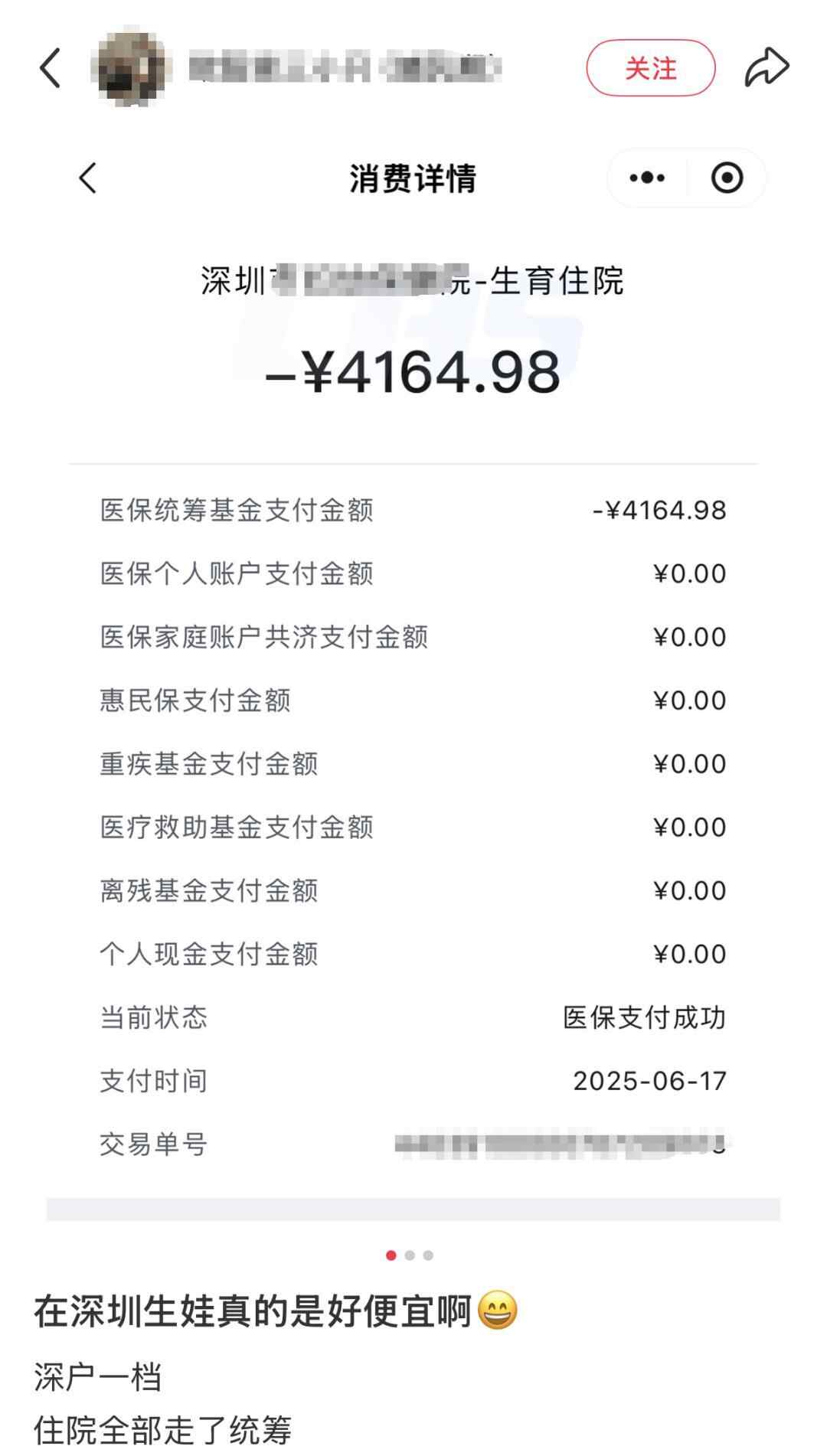 近期,网上还有不少深圳宝妈晒出住院分娩账单,总费用数千元,自付金额低至0元。