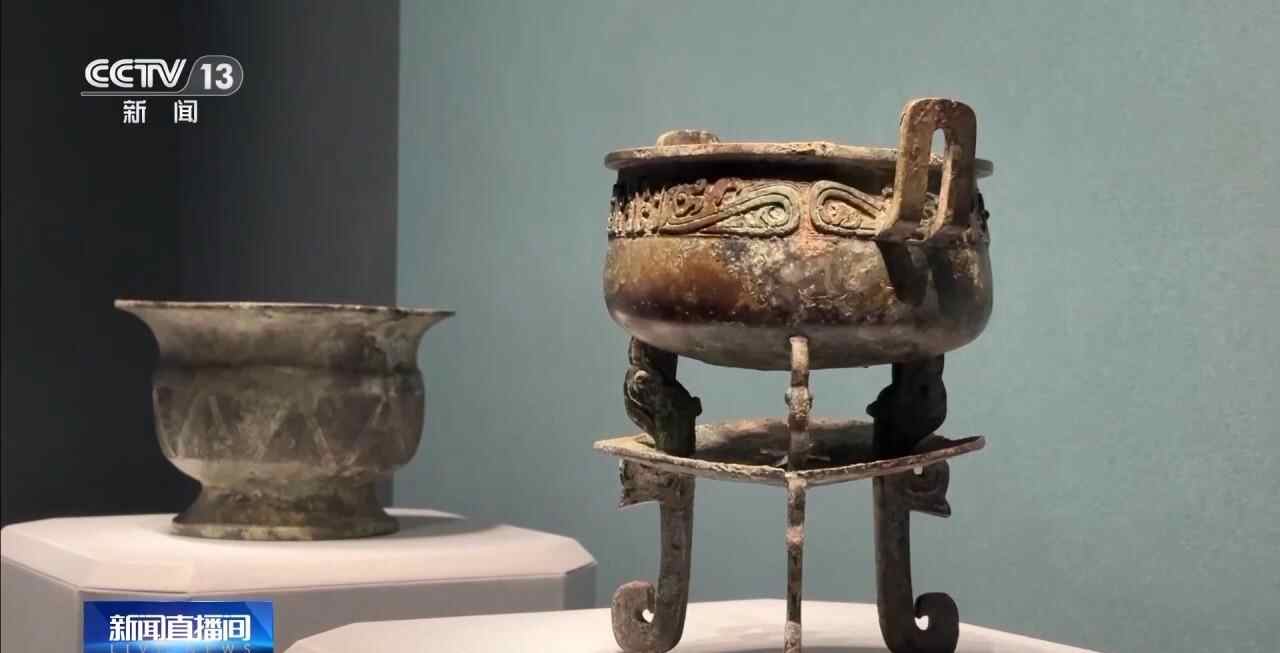 山西博物院讲解员 刘琳:在上方鼎的部分是用来盛放肉食的,而中间一层的托盘是用来盛放木炭,托盘上有三个十字形的镂孔,能起到很好的通风助燃以及把炭灰漏下去的效果。