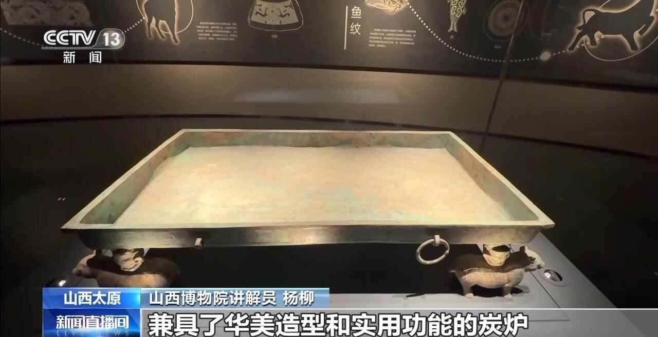 山西博物院讲解员 杨柳:炭炉是古人非常常用的一种取暖设备,早在2500年前的战国时期,就已经出现了青铜炭炉。夔龙纹方盘,根据它的体量和结构判断,很可能就是当时一件兼具了华美造型和实用功能的炭炉。
