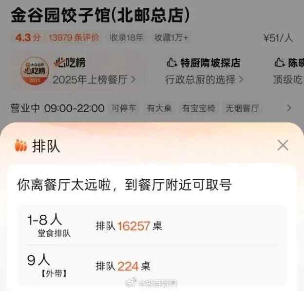 据媒体报道,社交平台上,多名北京市民向记者表示,该饺子馆非常火热,如果想要尽快吃上,必须得一大早起来排号,不然就得排到几千桌之后了。