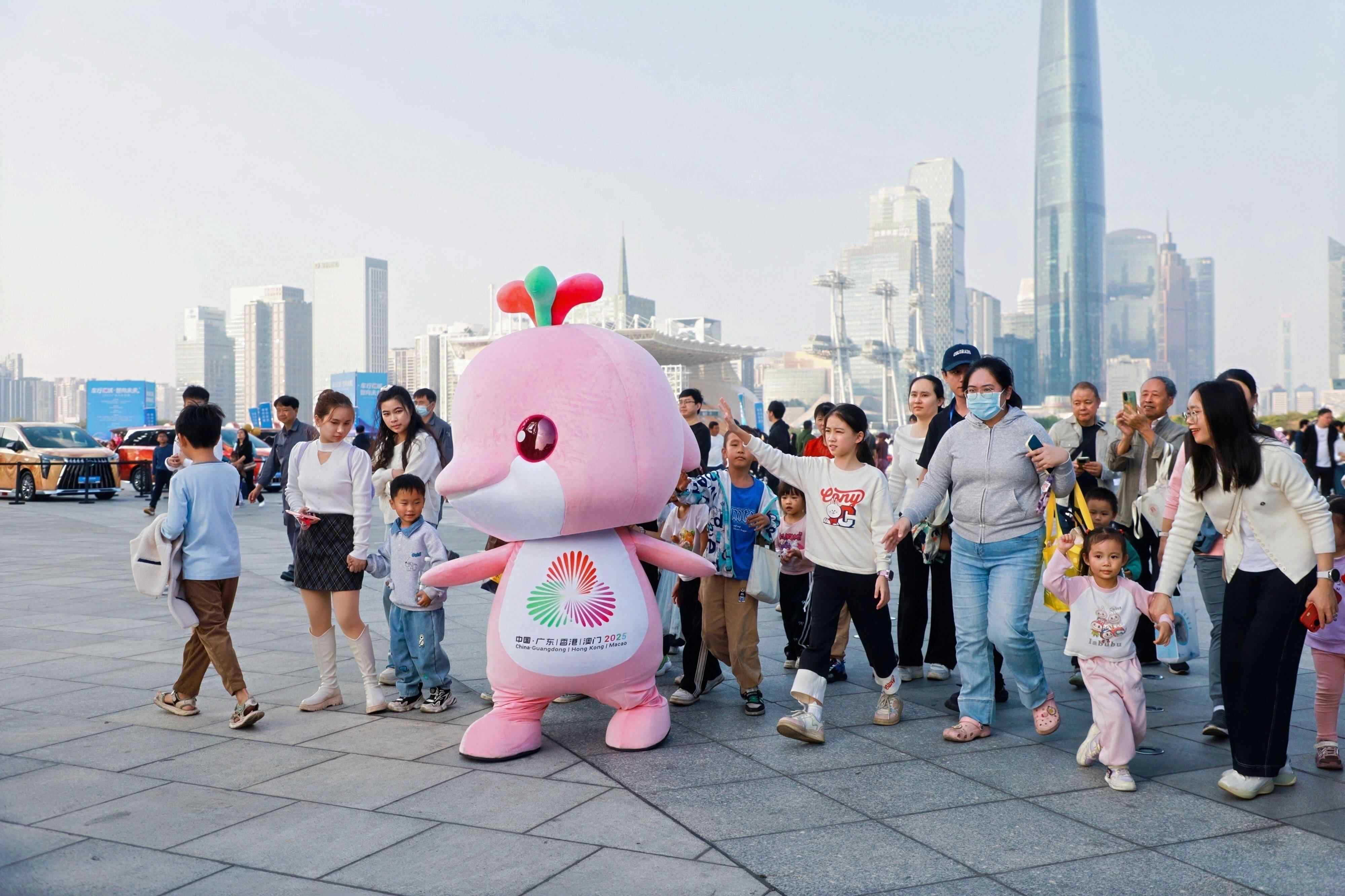 启动仪式现场,广州文化集团旗下广州歌舞剧院、广州市杂技艺术剧院等单位带来的暖场歌舞《气势如虹》、锣鼓醒狮《狮耀岭南》、管弦乐演奏、“大湾鸡”人偶互动等轮番上演,与汽车方阵形成精彩呼应。巡游开始,四大方阵按照未来、现在、经典、共创的“3+1”叙事逻辑依次登场,演员们化身“移动艺术使者”,将歌曲联唱、“大湾鸡”表演、舞狮击鼓、机器人互动等文化体育元素融入其中,吸引沿途市民群众热情围观。