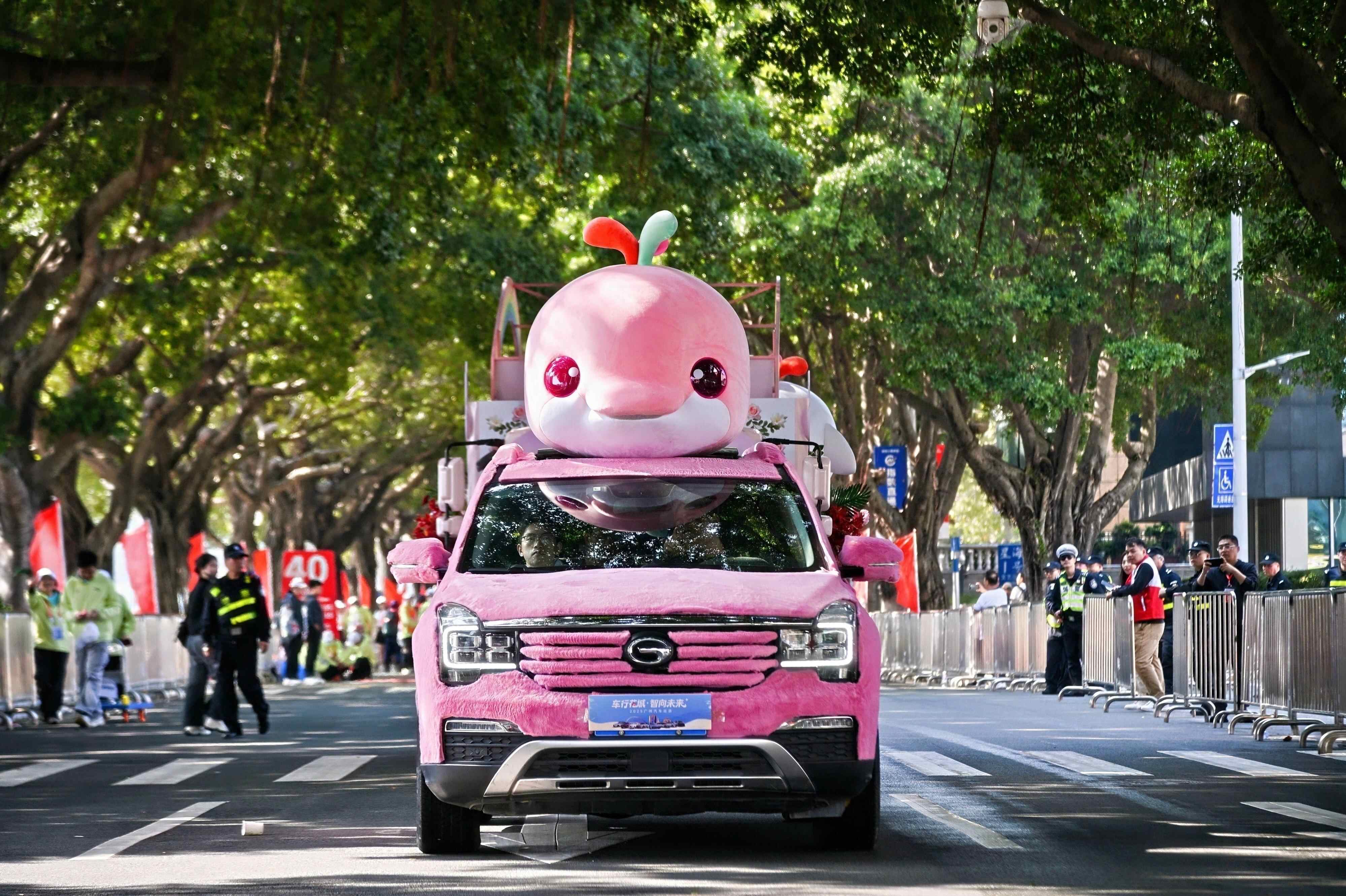 创新转型方阵,领航花车“穗悦今朝号”带着十五运的明星成员”大湾鸡”,和20台智能网联新能源车一同登场。这其中既有广汽、小鹏、东风日产等本土车企,也有一汽集团、东风集团等国内知名品牌,充分展示中国汽车产业在电动化、智能化转型中的技术成果与制造实力。