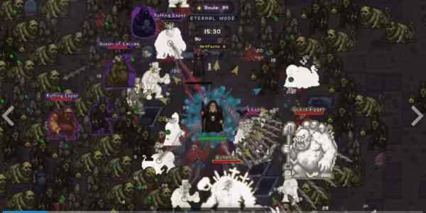 和多数小成本的弹幕Roguelike游戏一样,这款游戏的敌人会从画面的四面八方出现,玩家操作的人物则会自动射出弹幕,随着等级的提升,会解锁更强大的子弹、武器以及魔法,游戏也宣称支持多国语言(当然都是AI翻译的)。