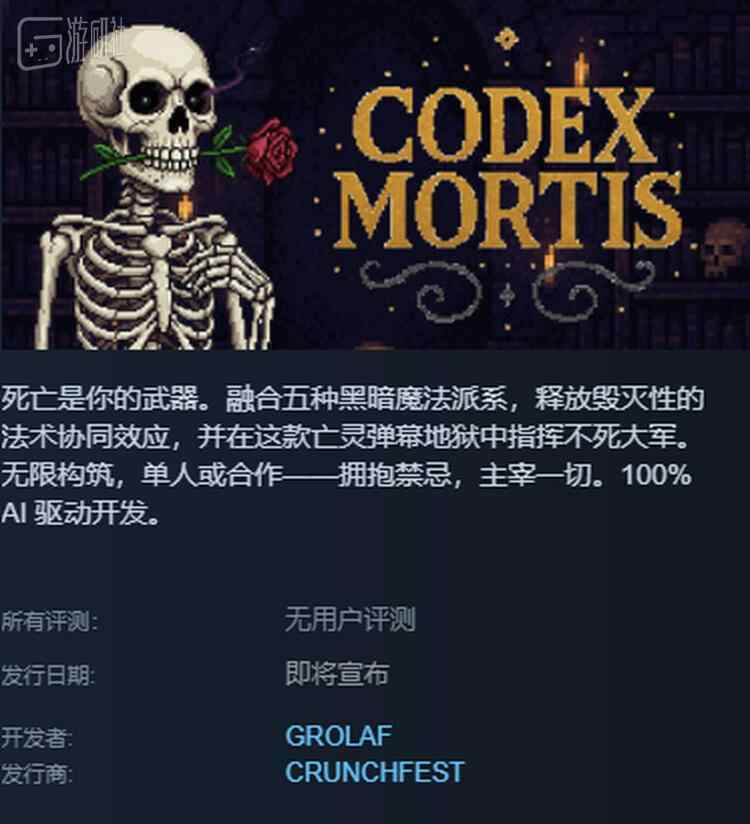 12月10日,由国外游戏作者Crunch Fest“开发”的新游戏《CODEX MORTIS》,正式在Steam平台上线了商店页面,它的特殊之处在于游戏介绍的最后一句——“100%AI 驱动开发。”