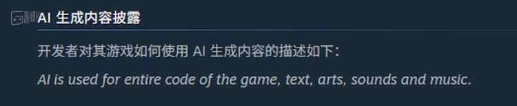 如今在Steam上发布的中小型独立游戏,已经可以越来越频繁的看到开发者在游戏简介的最后补上一行诸如“部分美术/音乐资产由AI生成”的小字,但对于这款游戏来说,作者做得要更彻底,因为它的介绍是这么说的: