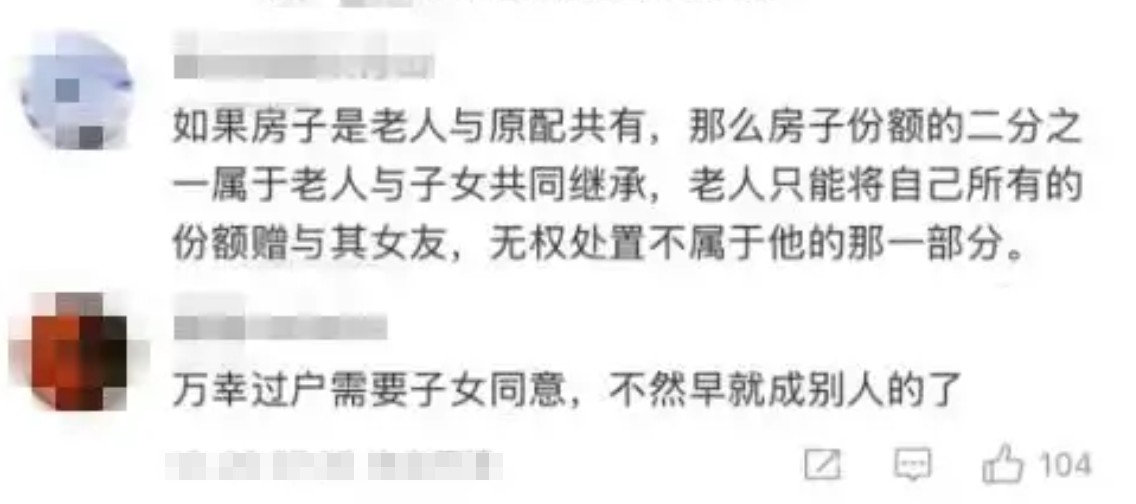 网友表示,幸好子女拥有房子份额,过户需要他们同意。