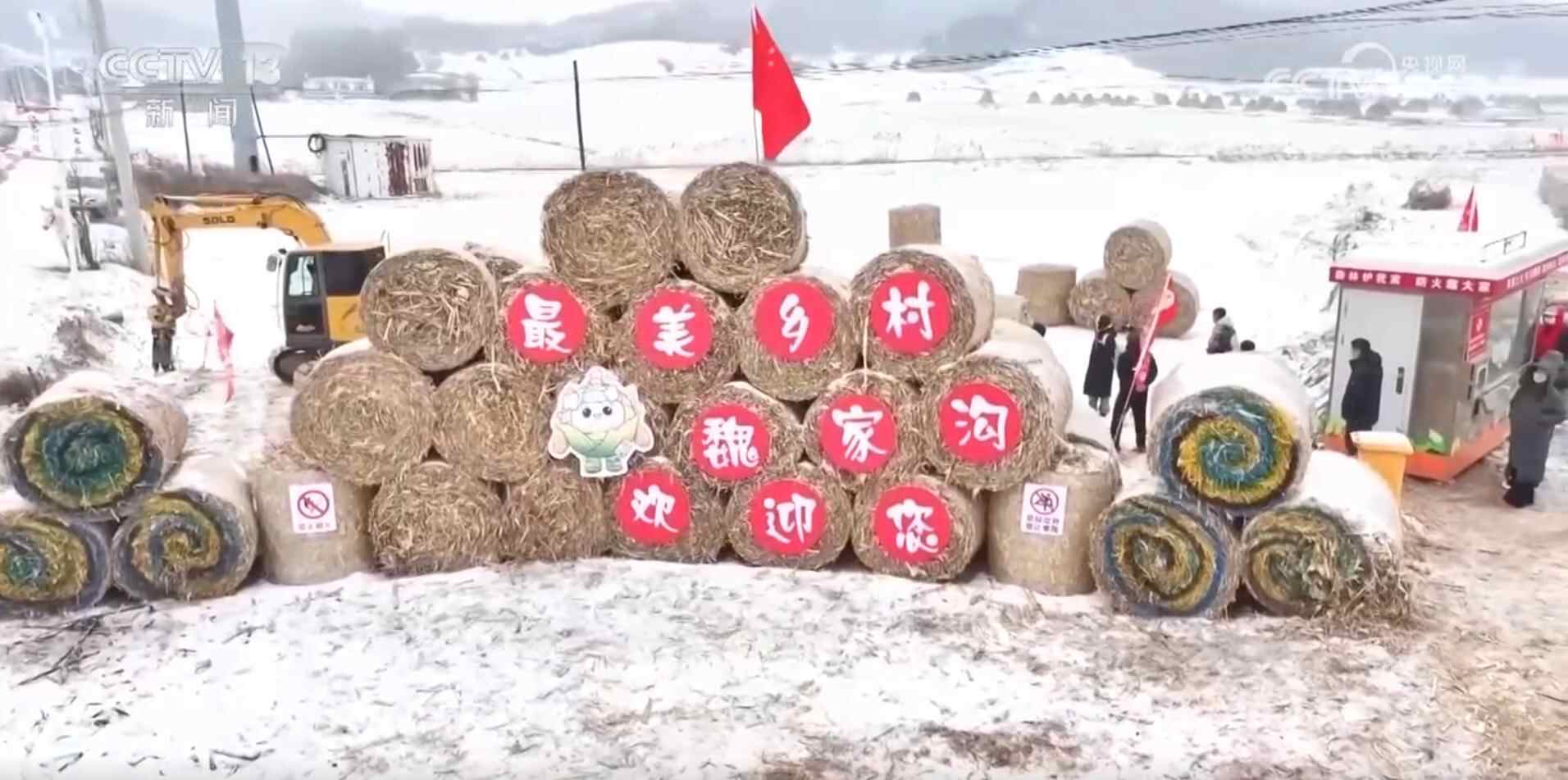 感受过了大集的热闹劲儿,我们再去东北乡村看看。在辽宁沈阳魏家沟村,往年这个时候已经到了冬季农闲时节。但现在,一些村民利用秋收后的秸秆打造出别具一格的“草滚子迷宫”,让原本寂静的村庄在这个冬天又焕发出滚烫人气。