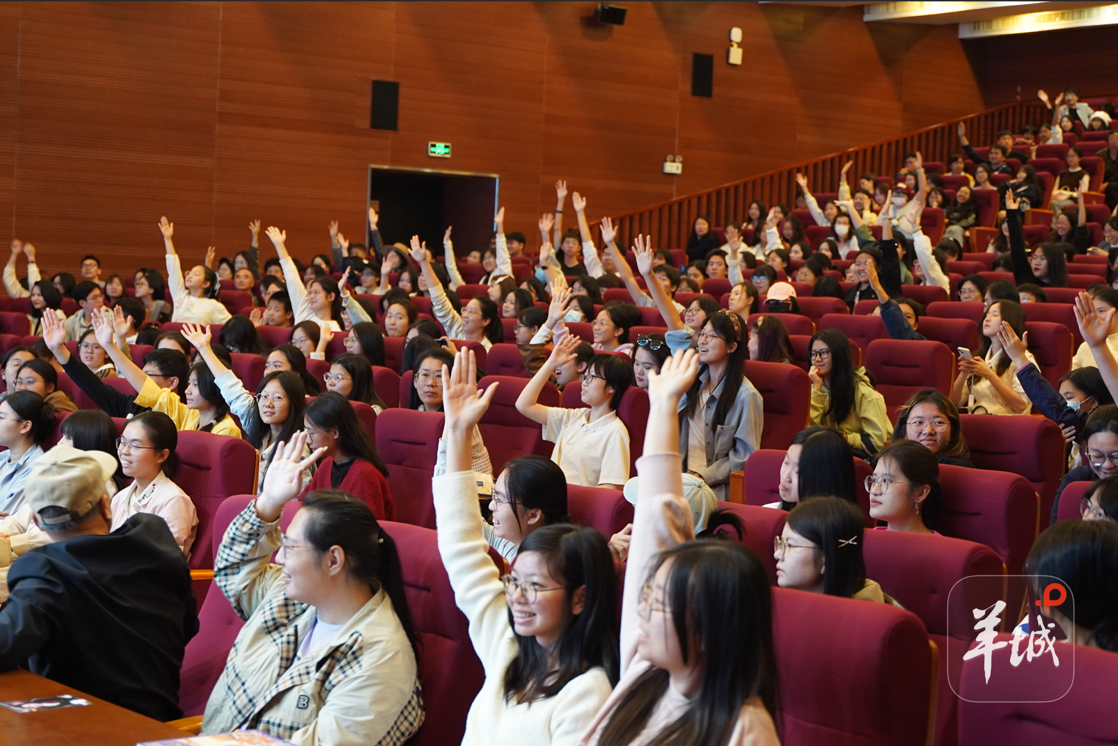 互动问答环节,台下观众们齐刷刷举起手,不少“小樱桃”们(杨红樱粉丝昵称)高举杨红樱作品,现场气氛热烈。