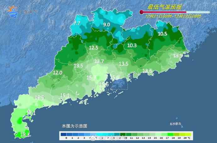 预计,21-22日,受北方弱冷空气南下影响,广东气温小幅下降,大部多云间晴。23日全省云量增多,部分市县有小雨。