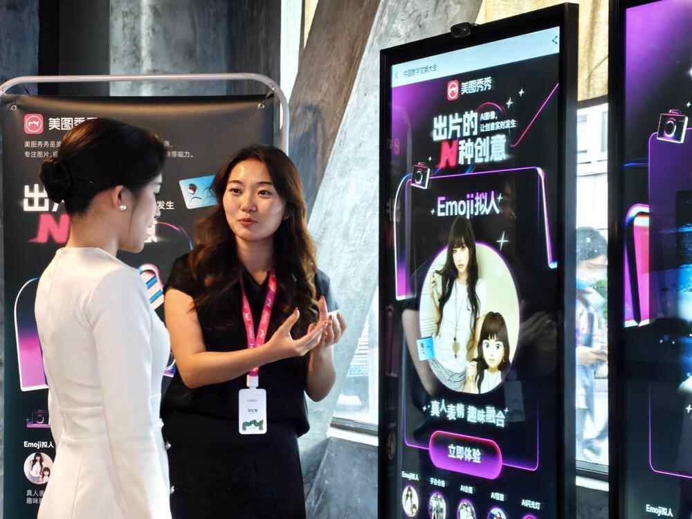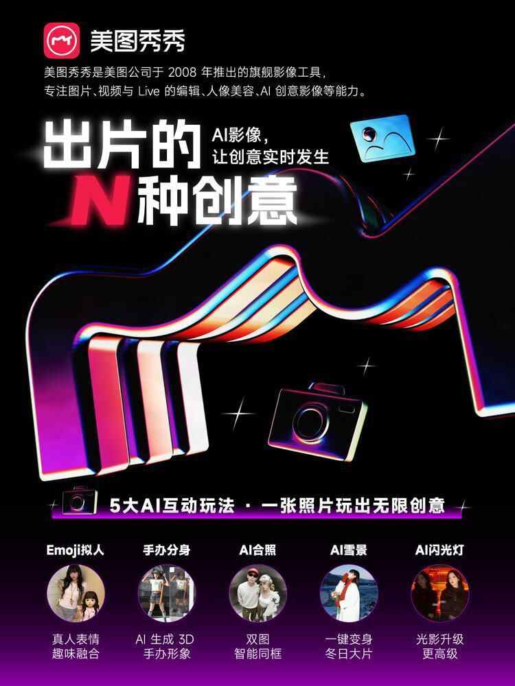 “我们致力于让AI技术变得温暖、易用。”美图秀秀工作人员在现场介绍道,从2008年推出至今,美图秀秀已从一款简单的图片编辑工具,成长为集图片、视频及Live动态影像处理于一体的创意平台。此次展示的AI功能不仅技术领先,现场观众可沉浸式体验多种美图秀秀AI创意玩法,包含Emoji拟人、手办分身、AI合照、AI雪景、AI闪光灯等。