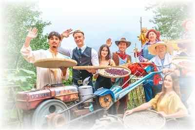 江西省上饶市婺源县篁岭村,外国游客在体验“晒秋”习俗。