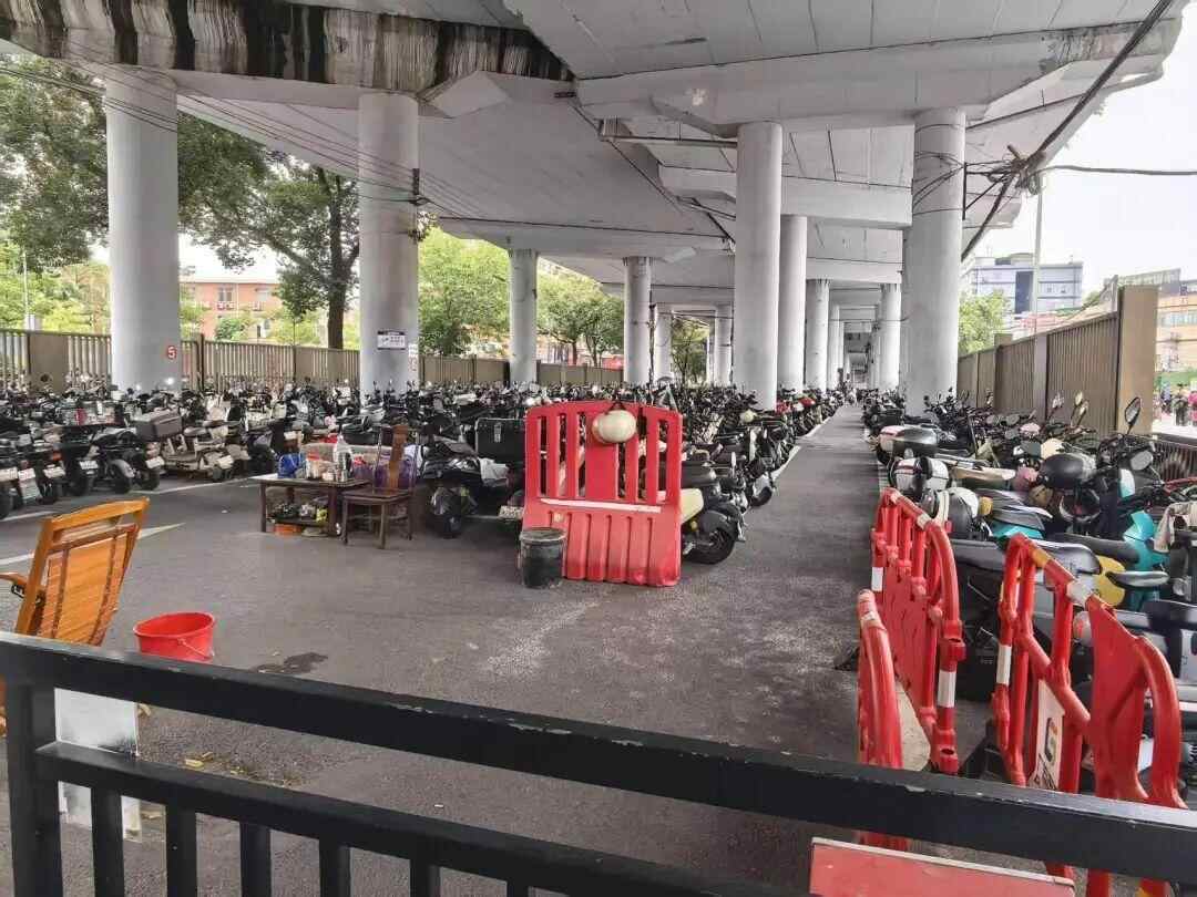 记者对比旧照片发现,停车场投用后,桥下空间从“叠车如山”变为基本畅通。物业在公众号中称,该车场“减少了周边人行道被电动车占道及乱停乱放的现象,提升了街道容貌”。