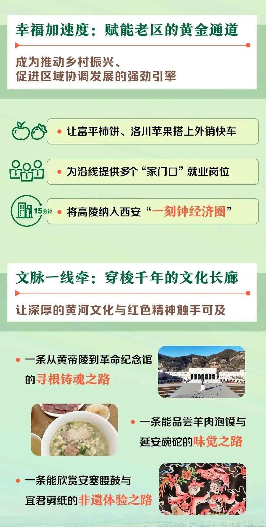 西安至延安,每一寸钢轨都浸润着厚重的历史回响:1991年,铁路铺轨到延安,革命圣地延安结束无铁路的历史;2005年,延安直通首都的T46次列车首发,“坐上火车逛北京”成为现实;2012年,动车组开进革命圣地,西安至延安“2小时经济圈”就此形成。