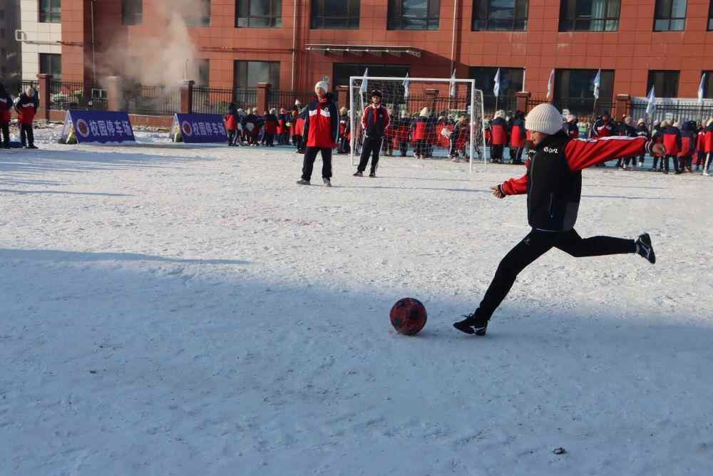 佳木斯市的学生们进行雪地足球比赛。(受访者供图)