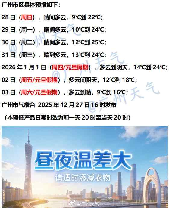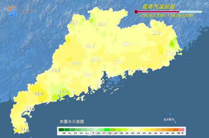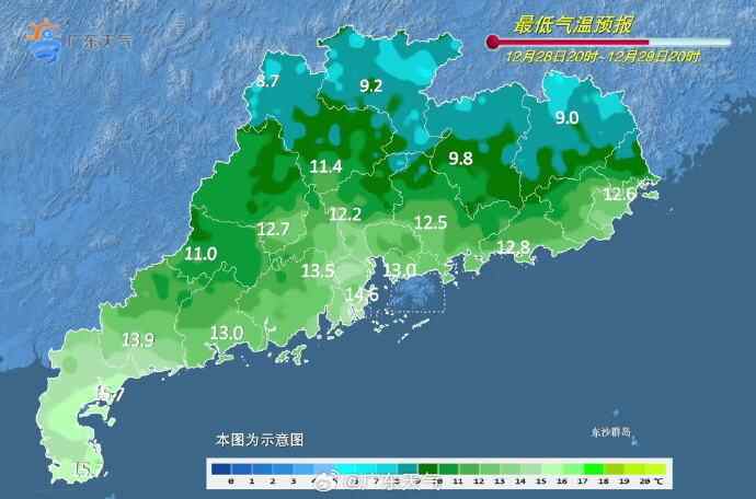 今日(12月28日),粤西偏西多云,其余大部分市县晴到多云。最低气温:粤北、珠三角北部市县7~10℃,局部5~7℃,南部沿海市县12~15℃,雷州半岛15~17℃,其余大部分市县10~12℃。