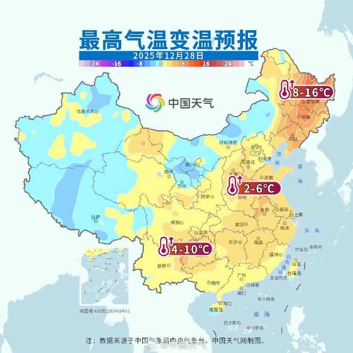 不过,后期我国冷空气活动仍然频繁。28日至30日,新一股冷空气将影响我国淮河以北地区,带来4至6℃降温,东北地区局地降幅在10℃以上,气温将较常年同期偏低,其他大部地区气温仍以偏高为主,将在偏暖格局中结束2025年。