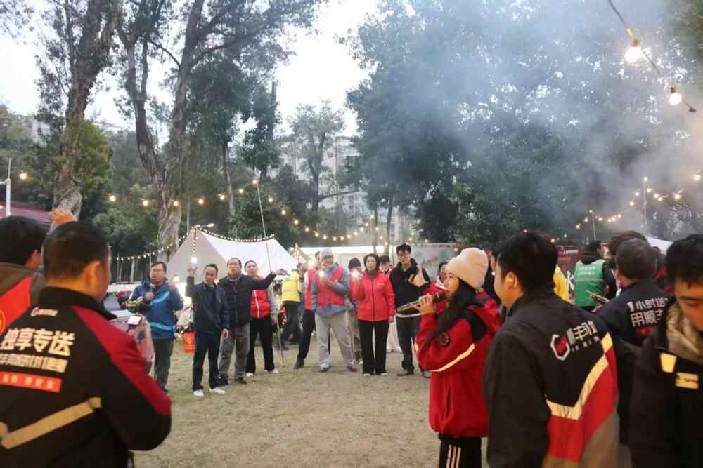 闭幕式后,联欢活动随即开启。烧烤档前香气四溢,骑手们自由取餐、围坐畅谈,分享一年收获。有奖游戏与“歌曲接龙”比赛环节笑声不断。夜色中,乐队演奏欢快旋律,更有骑手踊跃登台献唱,大家在美食、音乐与欢笑中卸下疲惫,享受难得的欢聚时光。