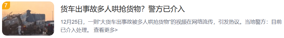 12月25日,一则“大货车出事故被多人哄抢货物”的视频在网络流传,引发热议。