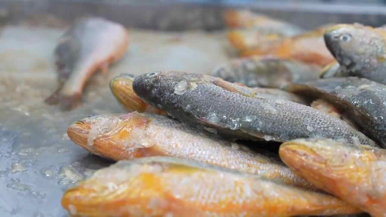 总台记者 彭雨佳:为了应对销售高峰期,目前我所在的这家企业,每天都要加工超过50吨的大黄鱼。在这里,一条大黄鱼的各个部位都有利用价值,鱼头鱼骨用来熬汤,鱼腩做成无刺鱼柳,鱼下巴做成特色小吃。