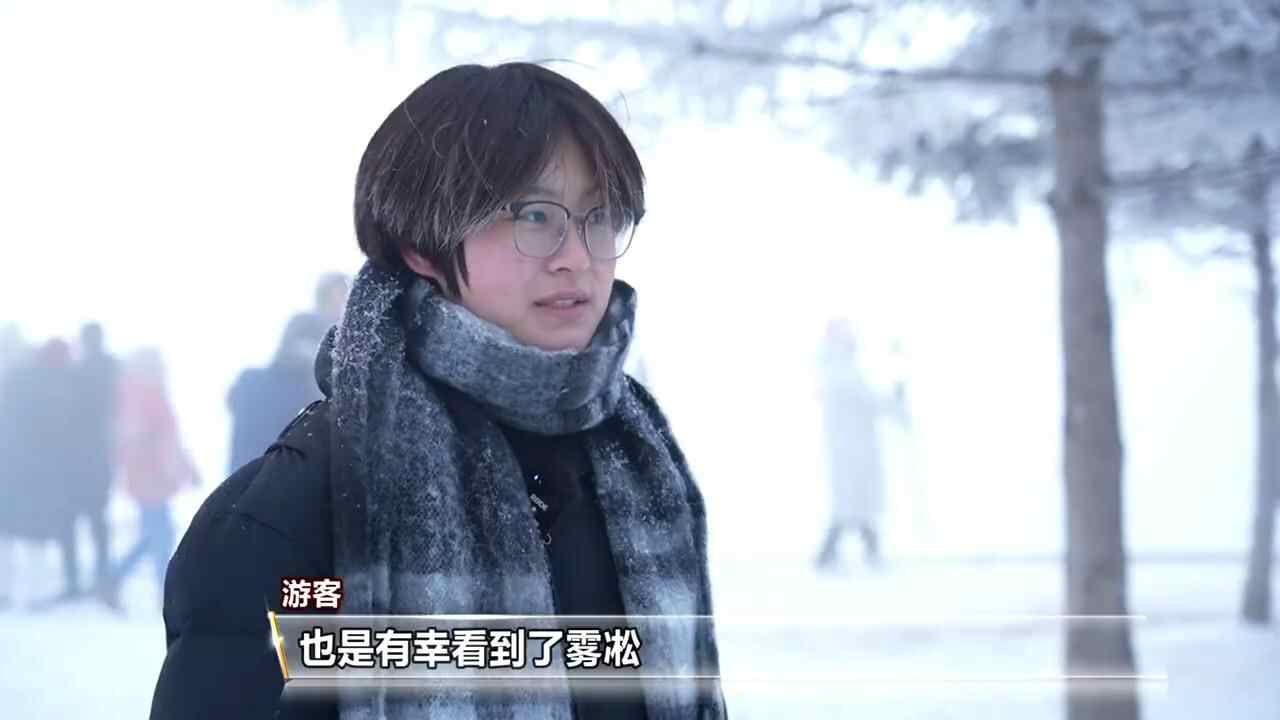 游客:第一次来看雾凇就能看到了,很开心,非常幸运,雾凇很好看,像星星一样。