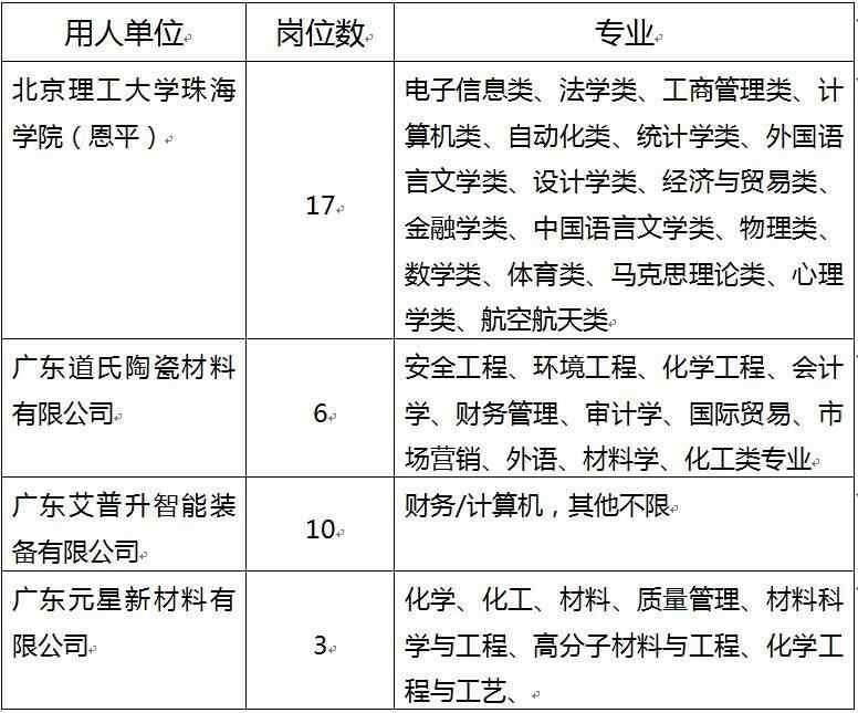 恩平企业赴秋季大型综合招聘会深圳专场岗位情况表
