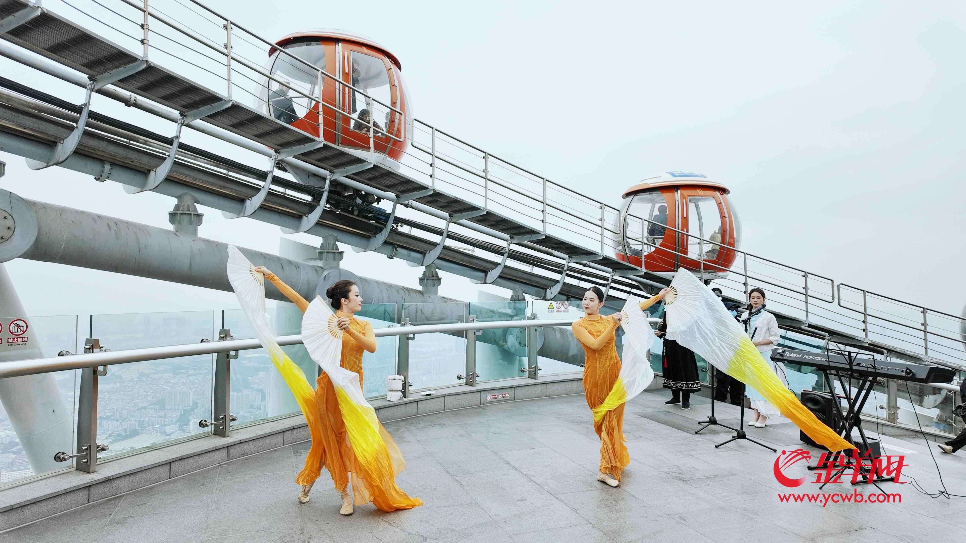 12月26日,2026广州塔新年艺术季系列活动迎来新一轮高潮,广州塔携手南方歌舞团在450米户外观景平台倾情演绎歌舞艺术展演。