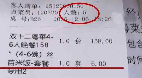 魏先生反映称,他在某餐厅直播间买了一个4-6人的套餐,当他们5人前去用餐时,餐厅只愿意按用餐人数上5份米饭,他认为这有点“霸王条款”了。