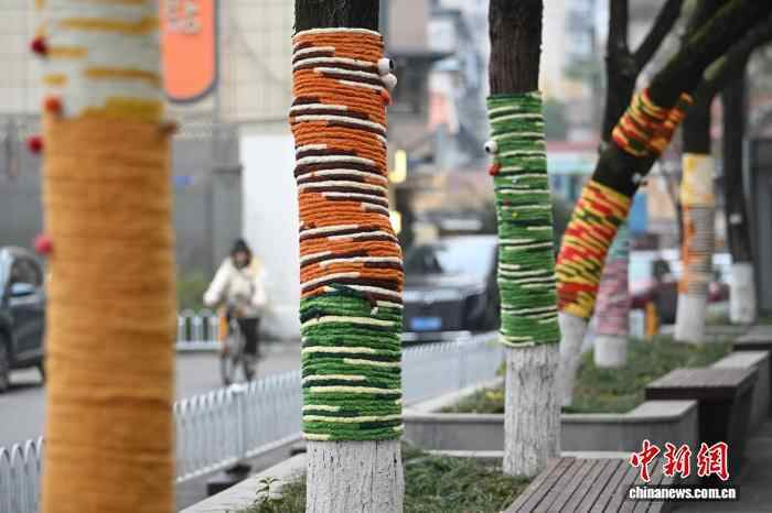 12月24日,南京市鼓楼区一道路上,树身“穿”上彩色毛衣搭配卡通表情,不仅扮靓了街巷,也为老城烟火增添了一份俏皮的暖意。中新社记者 泱波 摄