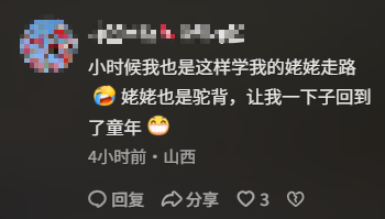 这点视频引发不少网友共鸣,他们表示自己小时候也这样学老人走路,“一下子回到了童年”。