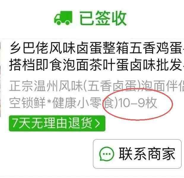 男子网购“10-9”枚卤蛋到货只有1枚,客服:亲,中间是减号,10-9=1