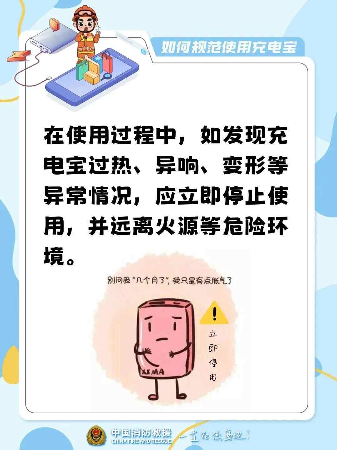 摔、碰、挤压等,可能会造成内部零件错位、电芯泄漏等,从而引发充电宝爆炸,充电宝外壳稍有鼓起时就必须停止使用。