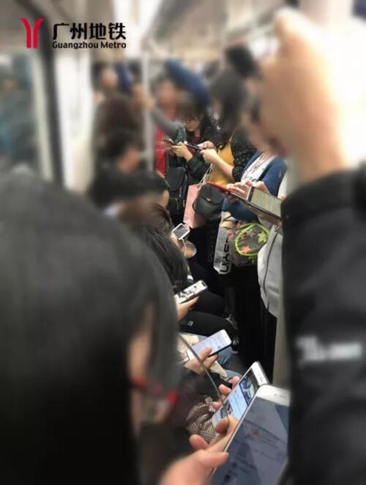 广州地铁提醒广大乘客,乘坐地铁时,请勿使用移动充电设备。 如遇突发情况,请保持冷静并及时向车站工作人员反映。