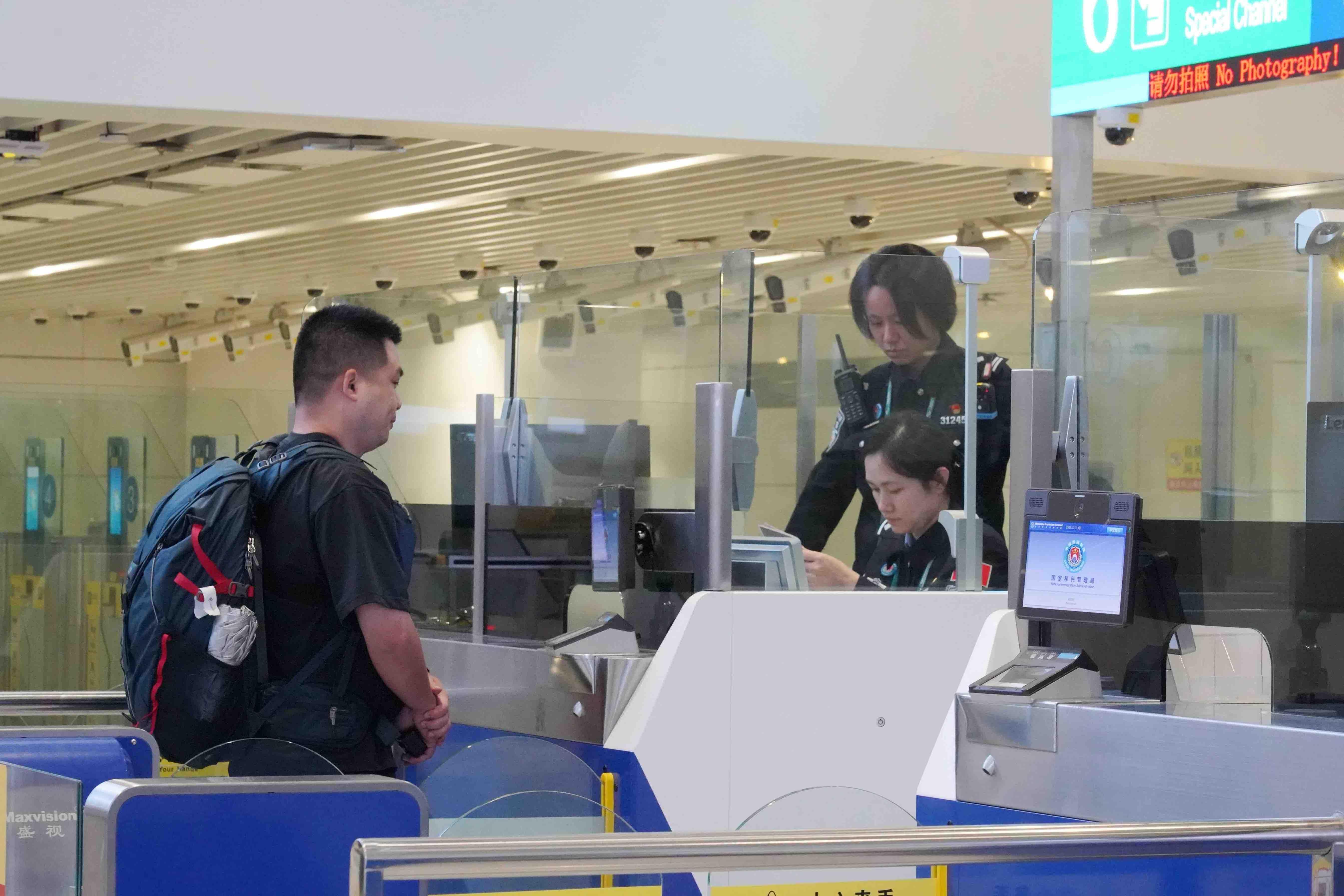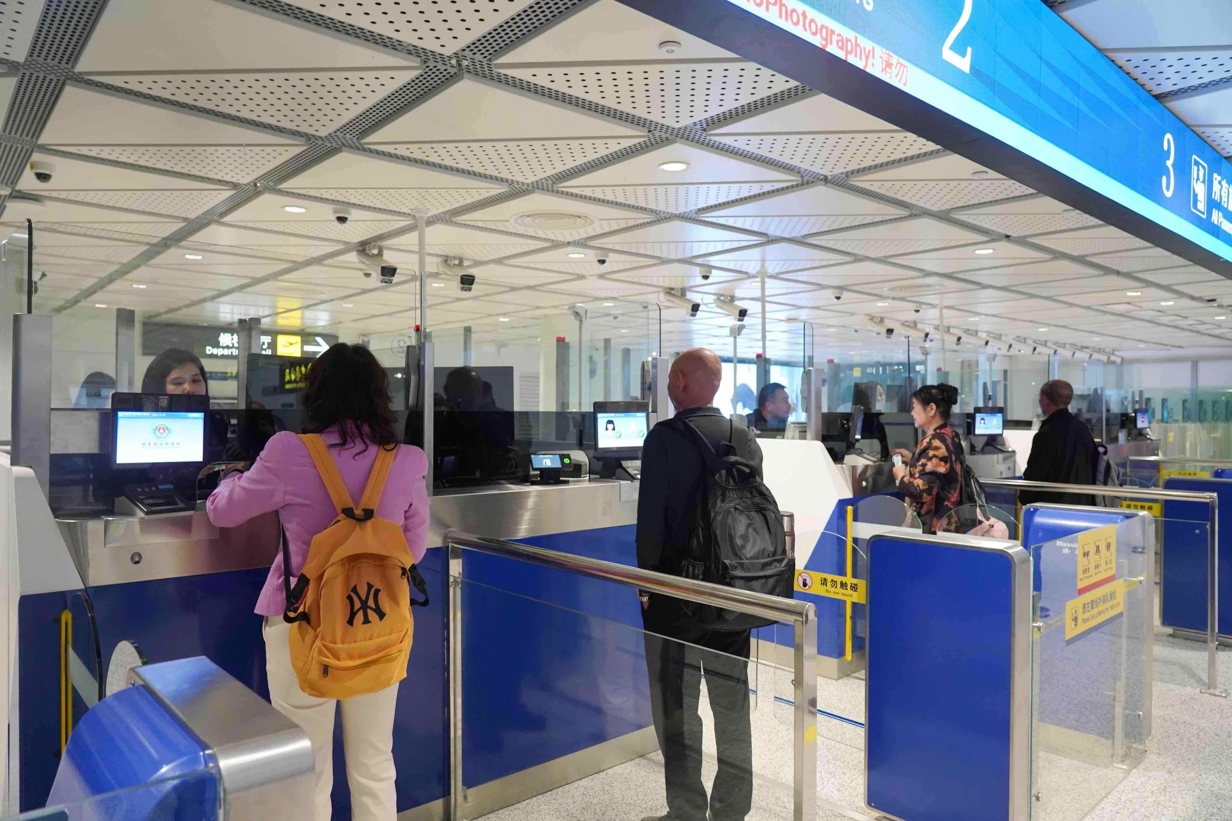 “您好,请出示您的出入境证件。”航班起飞前,机场大厅中,在移民管理警察的高效保障下,大包小包的出境旅客依次接受出入境边防检查。