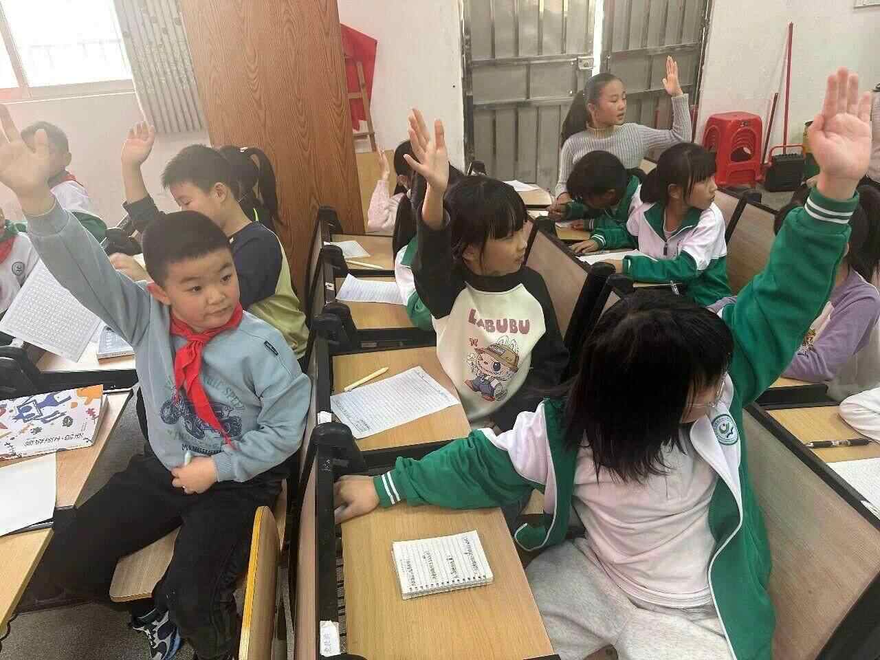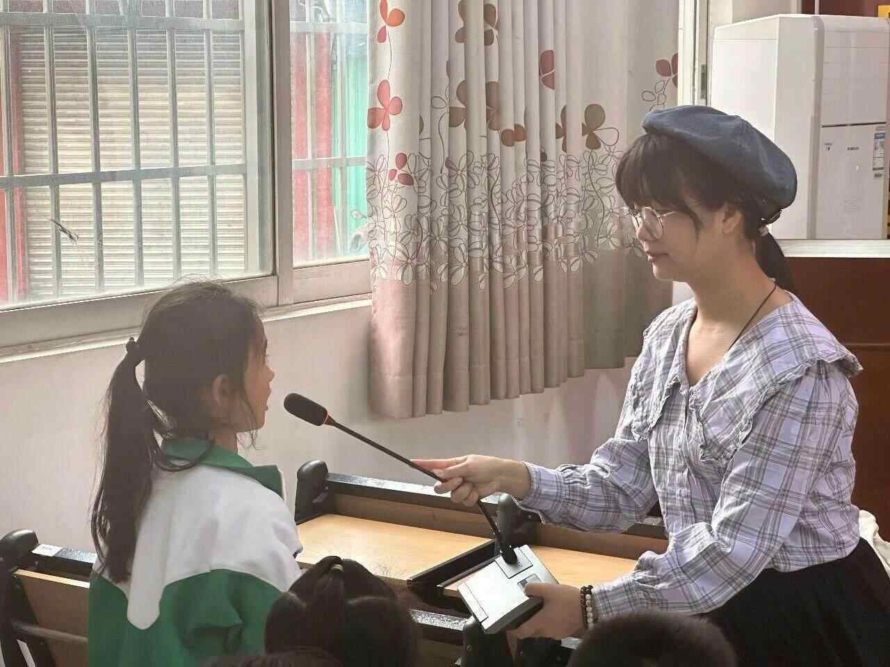 现场的热烈气氛,在小王老师发起的“百问互答”环节中真正荡漾开来。她引导孩子们写下关于诗歌的好奇:“写诗歌靠什么?”“先有诗还是先有文字?”“写诗的灵感来自于什么?”写好的问题被传递,又由同伴们接过并尝试回答。“靠想象力!”“靠创造力!”“先有文字,不然诗出不来。”质朴的问答之间,诗歌的奥秘在童言童语中被轻轻触碰。