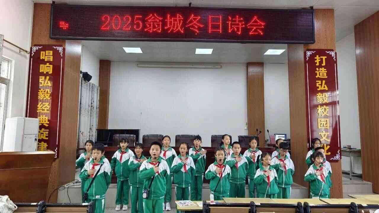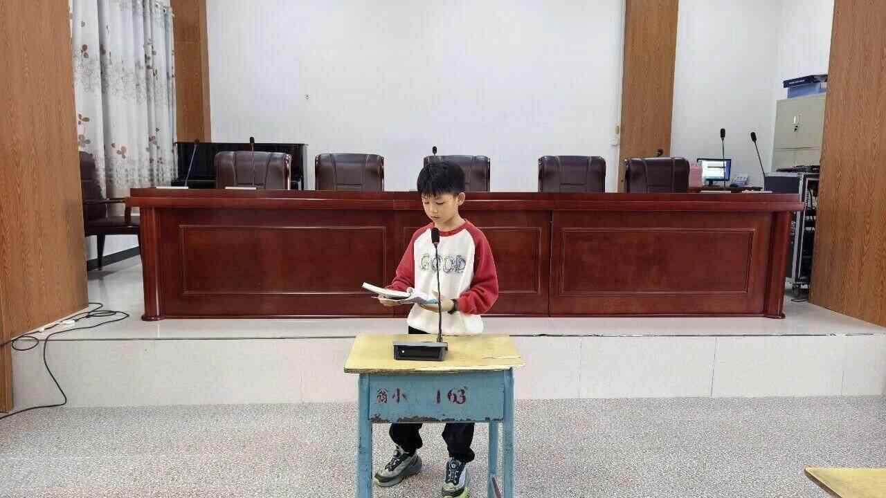 在天真而明亮的朗诵节目之后,台下的同学们也跃跃欲试。他们依次走上台,从《翁城孩子的诗》诗集中挑选一首,专注地朗读起来。那些关于云、关于风、关于脚下土地的诗句,在安静的聆听中,轻轻落下,又缓缓漾开,仿佛一颗颗石子投入心湖,泛起圈圈稚嫩而真实的涟漪。