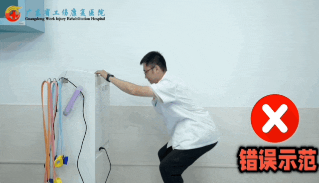 运动时,小腿几乎保持不动,膝盖与脚尖方向一致,向下时,膝盖不超过脚尖。